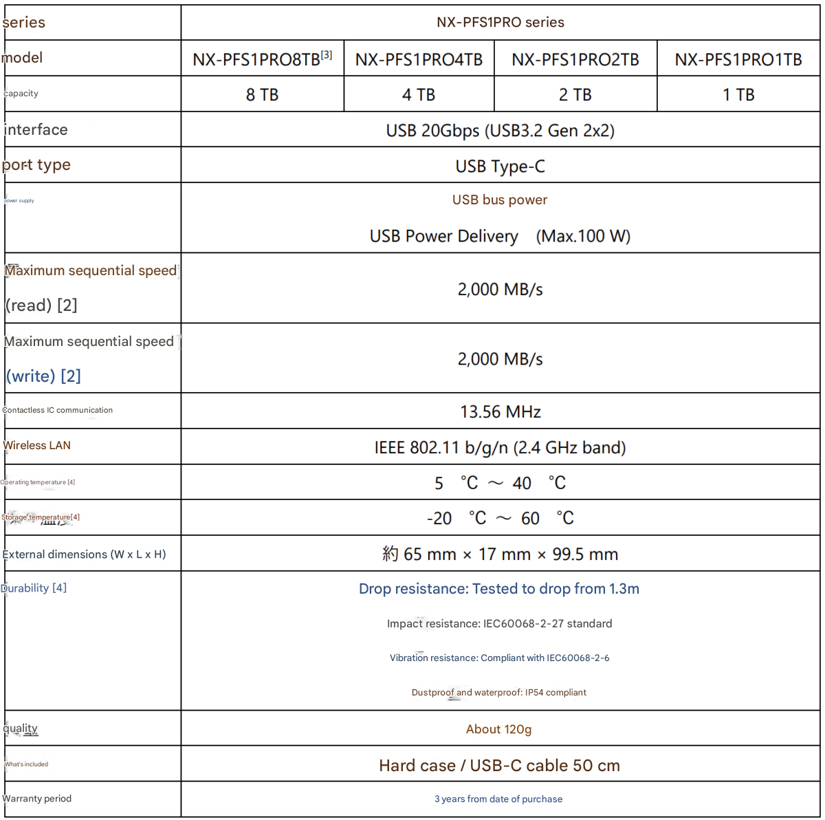 El Nextorage NX-PFS1PRO ha sido presentado oficialmente en Japón. Se trata de una nueva unidad SSD portátil que puede adquirirse con hasta 8 TB de almacenamiento, e independientemente de la capacidad elegida, la velocidad de transferencia de la unidad está valorada en 20 Gbps, a través de la interfaz USB 3.2 Gen 2x2 Tipo-C.