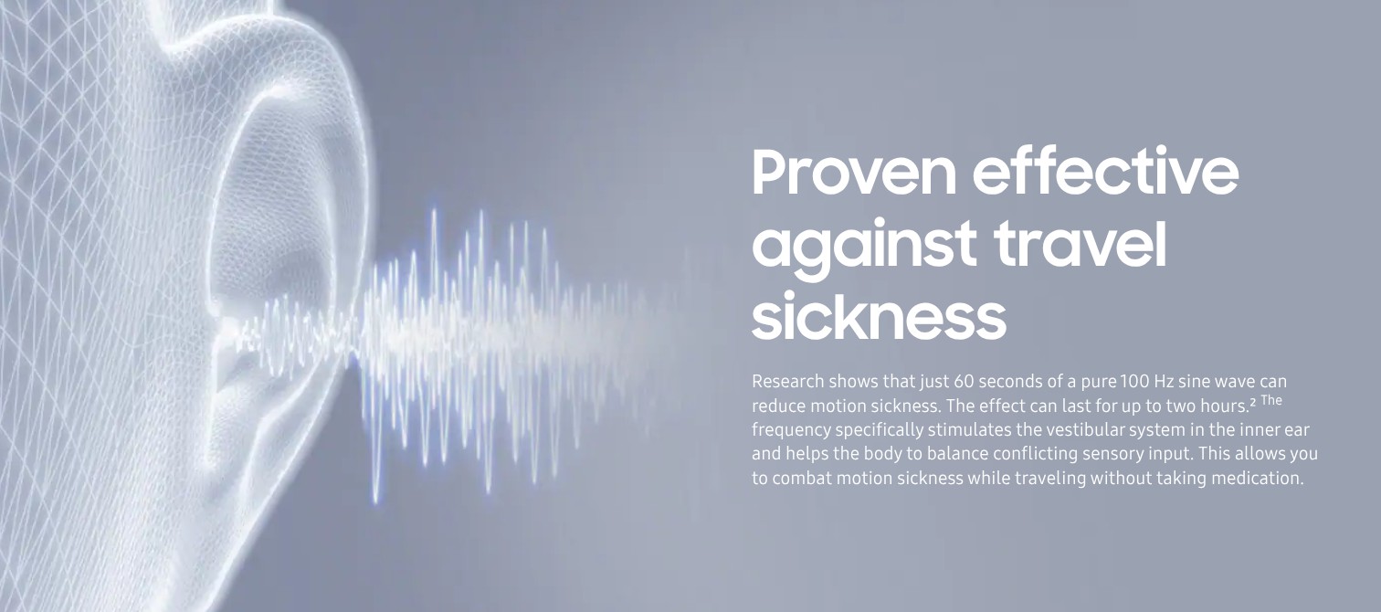 En su comunicado de prensa, Samsung afirma que el desarrollo se basa en los hallazgos de la Universidad de Nagoya, en Japón, donde los investigadores llevaron a cabo un experimento para determinar qué tono estimula con mayor eficacia el sistema vestibular. Descubrieron que escuchar un tono de 100 Hz a un volumen de 80 a 85 dbb durante un minuto ayuda a mejorar el equilibrio. Sin embargo, sólo funciona si no hay música u otros ruidos que interfieran con la onda sinusoidal.