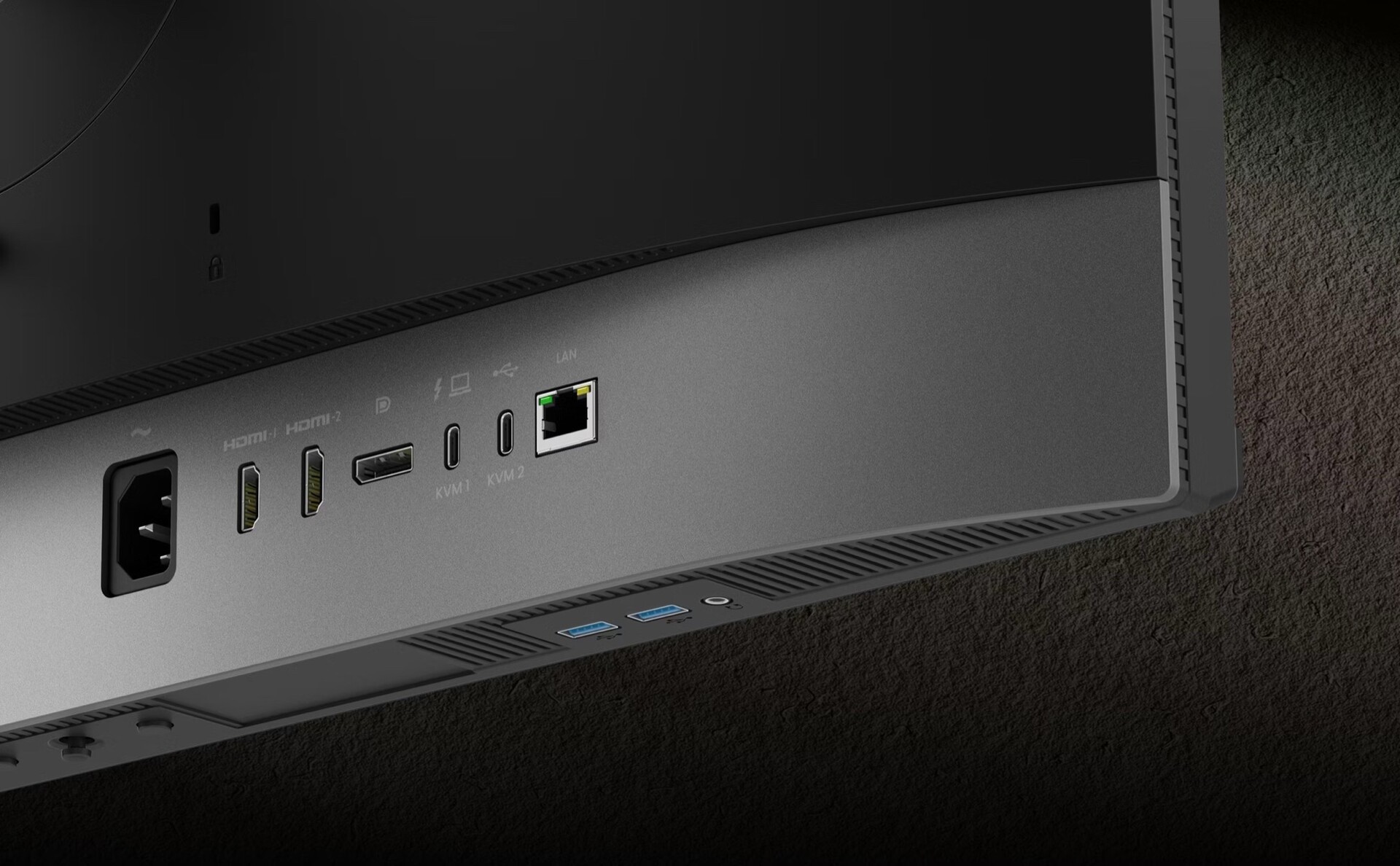 El monitor es compatible con Thunderbolt 4 y puede cargar portátiles conectados a través de USB-C con 96 vatios. Un conmutador KVM integrado, un concentrador USB de dos puertos, dos puertos HDMI, DisplayPort, Ethernet y un soporte ajustable en altura completan sus características.