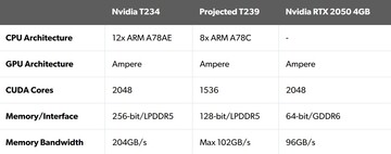 Obviamente, Leadbetter no tenía a mano un chip T239 ni una Switch 2 para realizar una comparación de proyección de rendimiento, así que decidió optar por una Dell Vostro con un Intel Core i7-1360P CPU y una GeForce RTX 2050 GPU (4 GB). El componente gráfico tenía un downclock de 750 MHz y contaba con un chip GA107 basado en Ampere (las tarjetas de la serie GeForce 20 de sobremesa estaban basadas en Turing; la serie para portátiles avanzó a Ampere). El autor opina que esta configuración puede considerarse un sustituto razonable de la T239, también basada en Ampere, gracias en parte a un ancho de banda de memoria similar (véase la captura de pantalla siguiente).