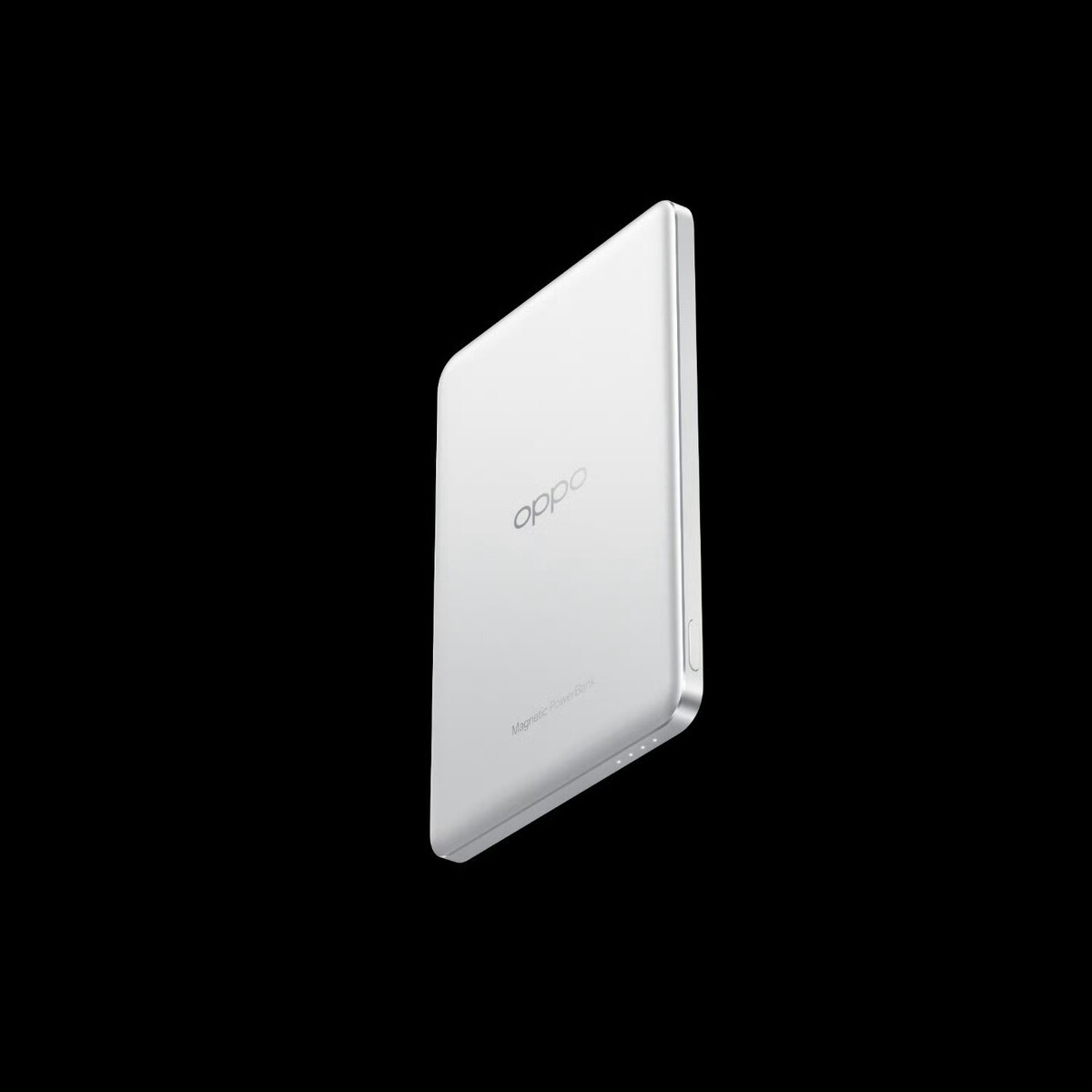 Se muestra que el power bank tiene un acabado blanco con el nombre de la marca Oppo en la parte superior y las palabras "Magnetic Power Bank" escritas en la parte inferior. Tiene un marco metálico plateado con cuatro LED en la parte inferior para indicar el nivel de batería y un botón en forma de pastilla en el lateral. No hay información sobre cuánto costará, pero podemos esperar que se lance junto con los teléfonos Find X8.