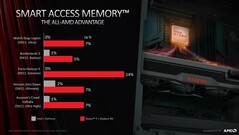 Según AMD, todos los benchmarks de juegos se ejecutaron en un sistema alimentado por el AMD Ryzen 7 5800X3D con la memoria de acceso inteligente (SAM) activada. Durante la presentación, AMD destacó repetidamente cómo SAM y Radeon Super Resolution (RSR) pueden ser beneficiosos.