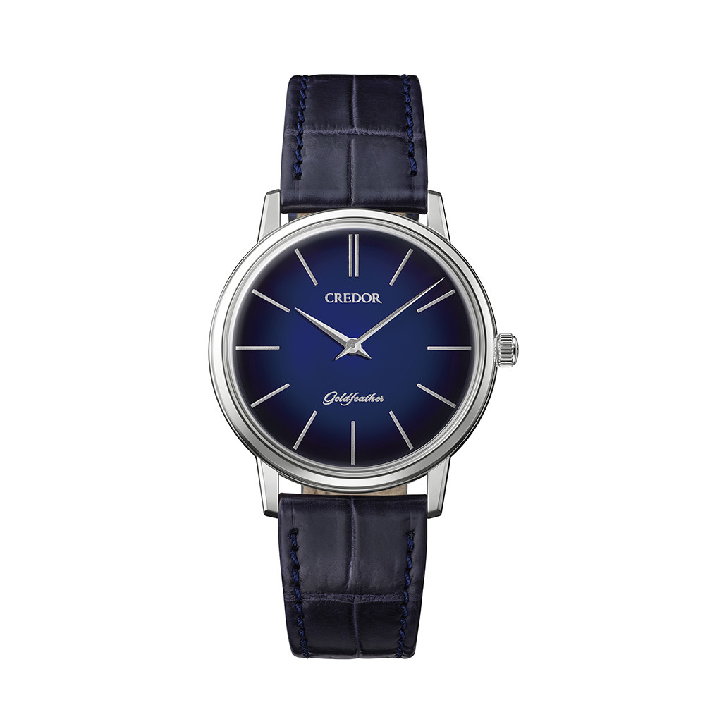 El Goldfeather GBBY967 presenta una esfera lacada Urushi en degradado azul. Los artesanos aplican la laca en varias capas para conseguir una transición suave y natural de oscuro a claro en la esfera. Los índices están realzados utilizando "taka maki-e" con polvo de platino. Este reloj alberga el Calibre 6810 manual en una caja de platino de 37,1 mm. Tiene un grosor de 7,3 mm, una resistencia al agua de 3 bares y se vende por 3.520.000 yenes (~22.210 dólares).