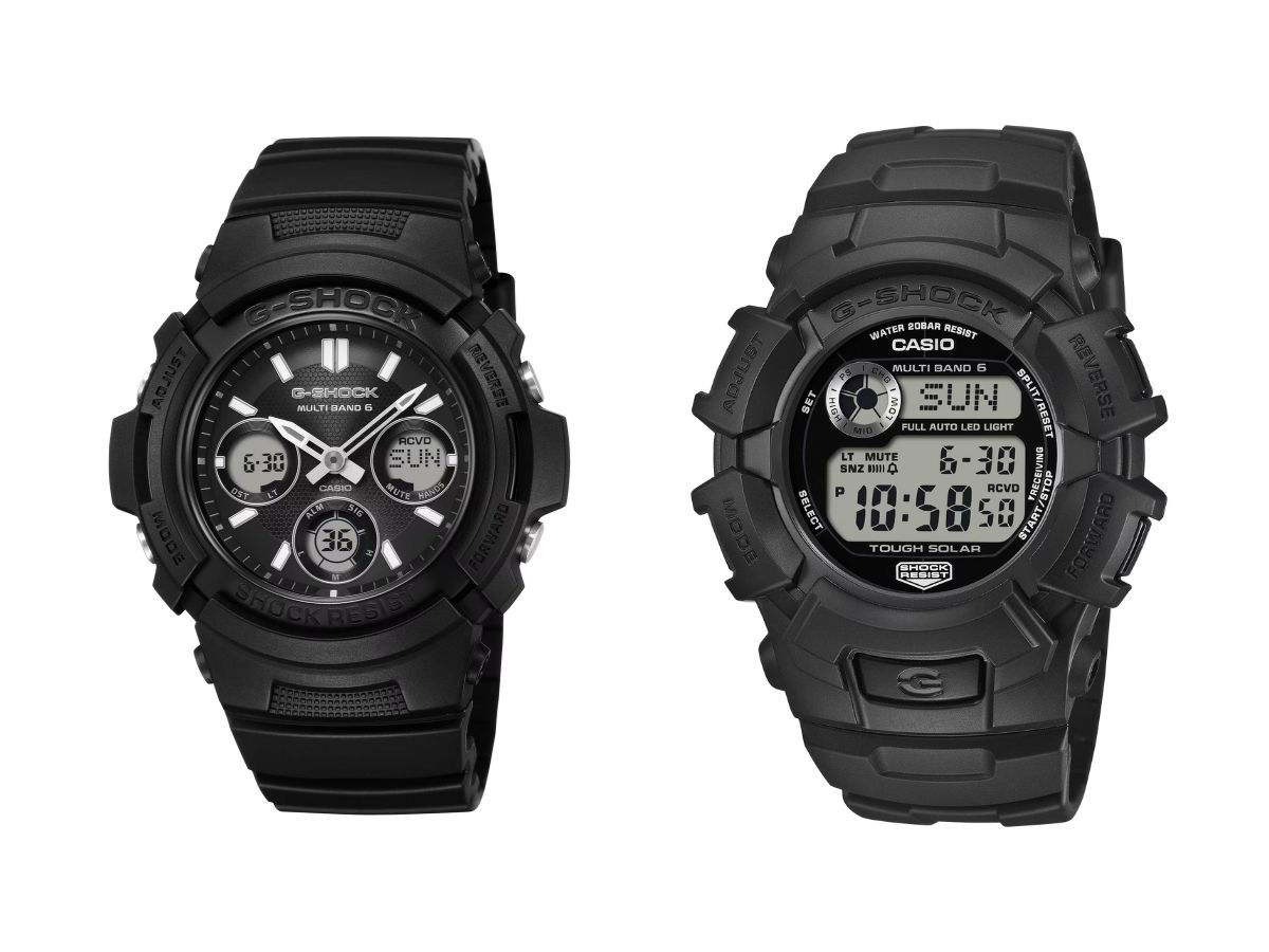 El G-Shock AWG-M100FP-1A1 es un reloj híbrido con dos agujas analógicas y tres esferas insertables. Estas pequeñas pantallas digitales muestran información como la fecha y el día de la semana. Por su parte, el G-Shock GW-2320FP-1A1 es un reloj digital con tres pantallas que muestran información similar sobre la fecha y la hora. Ambos modelos están controlados por radio (Multibanda 6) y admiten 31 husos horarios mundiales. Ofrecen una serie de funciones, como cinco alarmas, un temporizador y un cronómetro, y se puede utilizar una retroiluminación LED para iluminar la esfera por la noche. Además, utilizan la tecnología de carga Tough Solar para prolongar la duración de su batería.