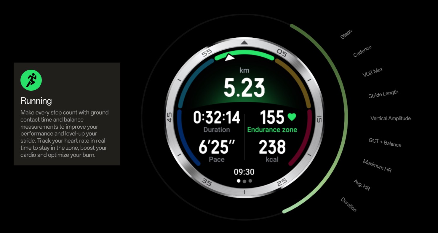 Para el seguimiento de la forma física, el OnePlus Watch 3 puede realizar un seguimiento de más de 100 deportes con modos profesionales para deportes selectos como el atletismo, el tenis, el esquí y el ciclismo. También cuenta con GPS de doble frecuencia, barómetro, giroscopio y brújula.
