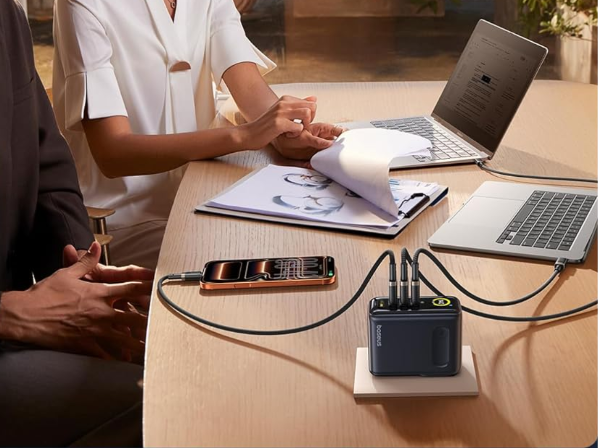El PicoGo AH11 es un cargador de cuatro puertos, con tres salidas USB-C y una salida USB-A. La potencia máxima de 140 W está disponible a través de USB-C, y Baseus sugiere que permitiría cargar un MacBook Pro 16 (M4) hasta el 54% en media hora. La empresa sugiere que, al cargar varios dispositivos simultáneamente, la potencia se distribuya de forma inteligente. Por ejemplo, el USB-C podría ofrecer 65 W, 45 W y 12 W, respectivamente, y el USB-A 12 W.