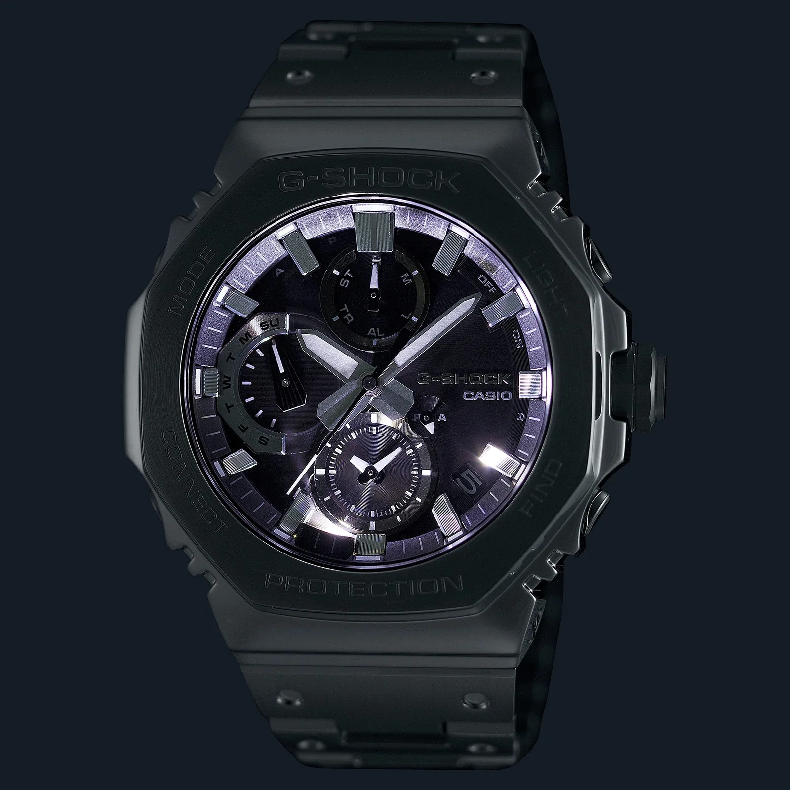 También incluye conectividad Bluetooth. Los usuarios pueden emparejar sus relojes con la aplicación Casio Watches para obtener la corrección automática de la hora, la hora mundial de unas 300 ciudades y la función de buscador de teléfonos. La energía procede del sistema Tough Solar de Casio, con una autonomía declarada de unos cinco meses con carga completa, que se amplía a unos 18 meses en modo de ahorro de energía.