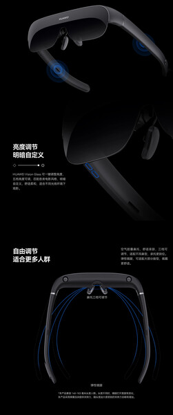 Según la página de producto de Huawei, cada panel Micro OLED mide 0,49 pulgadas y produce 1.920 x 1.080 píxeles con una densidad de píxeles de 4.523 SPR. Además, cada panel emite a 60 Hz, cubre el 90% del espacio de color DCI-P3 y ofrece 480 nits. Además, el Vision Glass ofrece un campo de visión de 41°, 53 PPD y una distancia interpupilar de 63,5 mm (± 4 mm), todo ello para crear proyecciones de hasta 120 pulgadas.
