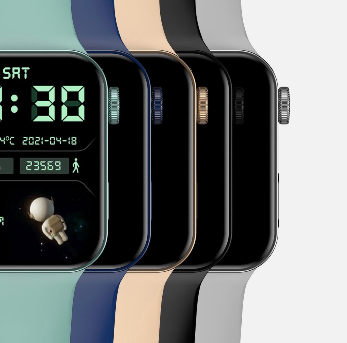 El IWO 15 Smartwatch Series 7 es un ejemplo perfecto de este tipo de copia barata. No es casualidad que el nombre de esta imitación haga referencia a iOS 15 y al Apple Watch Series 7, que son los nombres de dos productos oficiales que Apple lanzará este otoño. Incluso el material de marketing se basa en los típicos diseños por los que es conocido Apple, y tanto las esferas del reloj como las aplicaciones recuerdan claramente a un Apple Watch.