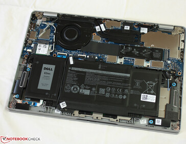 Se puede acceder al hardware después de retirar la carcasa inferior. Se aflojan todos los tornillos de la parte inferior del aparato. Al levantar el panel, hay que empezar por la zona de las bisagras. Entonces tienes acceso al SSD, la batería, el módulo WLAN, el módem LTE (opcional, preparado con antenas), y el ventilador. No hay ranuras de memoria, la RAM es onboard.