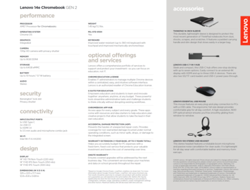Lenovo indica que el 14e Gen 2 está impulsado por el procesador AMD para Chromebooks, aunque no menciona exactamente qué SKU. El año pasado, AMD presentó CPUs Ryzen basadas en Zen+ para Chromebooks, incluyendo el Ryzen 7 3700C y el Ryzen 5 3500C, por lo que estas podrían ser las opciones probables. Se pueden configurar hasta 8 GB de RAM y hasta 64 GB de almacenamiento eMMC