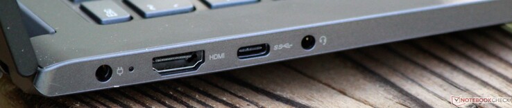 La conectividad es media. El lado izquierdo tiene un puerto HDMI, un puerto USB 3.1 (Gen 1) tipo C y una toma de auriculares. El lado derecho contiene el botón de encendido, un lector de tarjetas SD de media profundidad y dos puertos USB 3.1 (Gen 1) tipo A, uno de los cuales está siempre encendido y se puede utilizar para cargar dispositivos móviles incluso cuando el Flex 14 está apagado. Aunque la selección de puertos es adecuada, el Flex 14 podría beneficiarse de los controles de volumen montados en el lateral (similares a los de otros dispositivos 2 en 1).