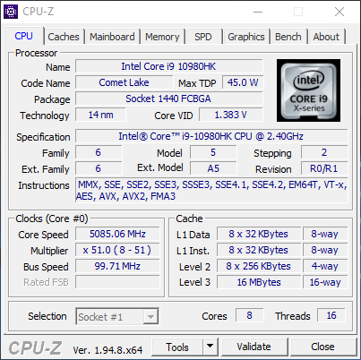 | 86.3 % v7 (old) | 12/2020 | Lenovo Legion 7 15IMH05-81YT001VGE i9-10980HK, GeForce RTX 2080 Super Max-Q | 2.4 kg | 19.9 mm | 15.60" | 1920x1080 | |