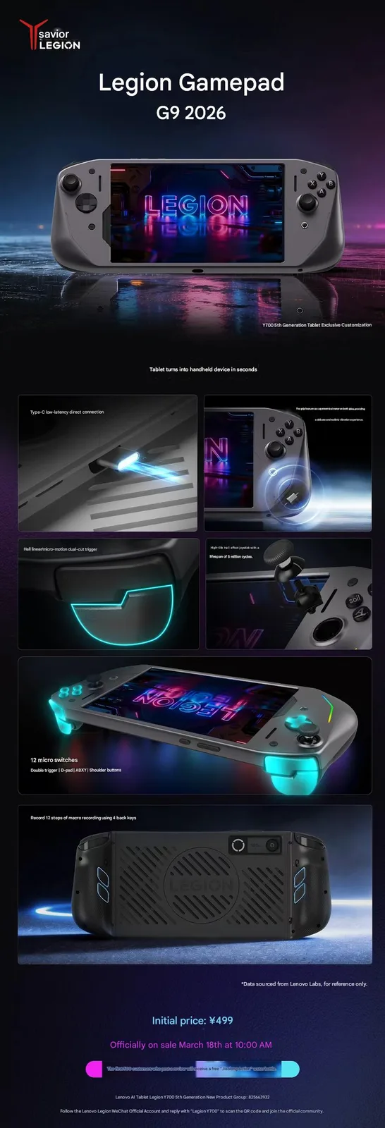 El Legion G9 2026 solo es compatible oficialmente con la Legion Y700 Gen 5 a través del puerto USB Type-C lateral de la tableta. Sin embargo, el controlador debería funcionar también con la Legion Tab Gen 5. No obstante, Lenovo no ha aclarado si la Legion G9 2026 se venderá en todo el mundo. Como referencia, Lenovo ha fijado el precio de su nuevo controlador en 499 CNY (~73 $) en China.