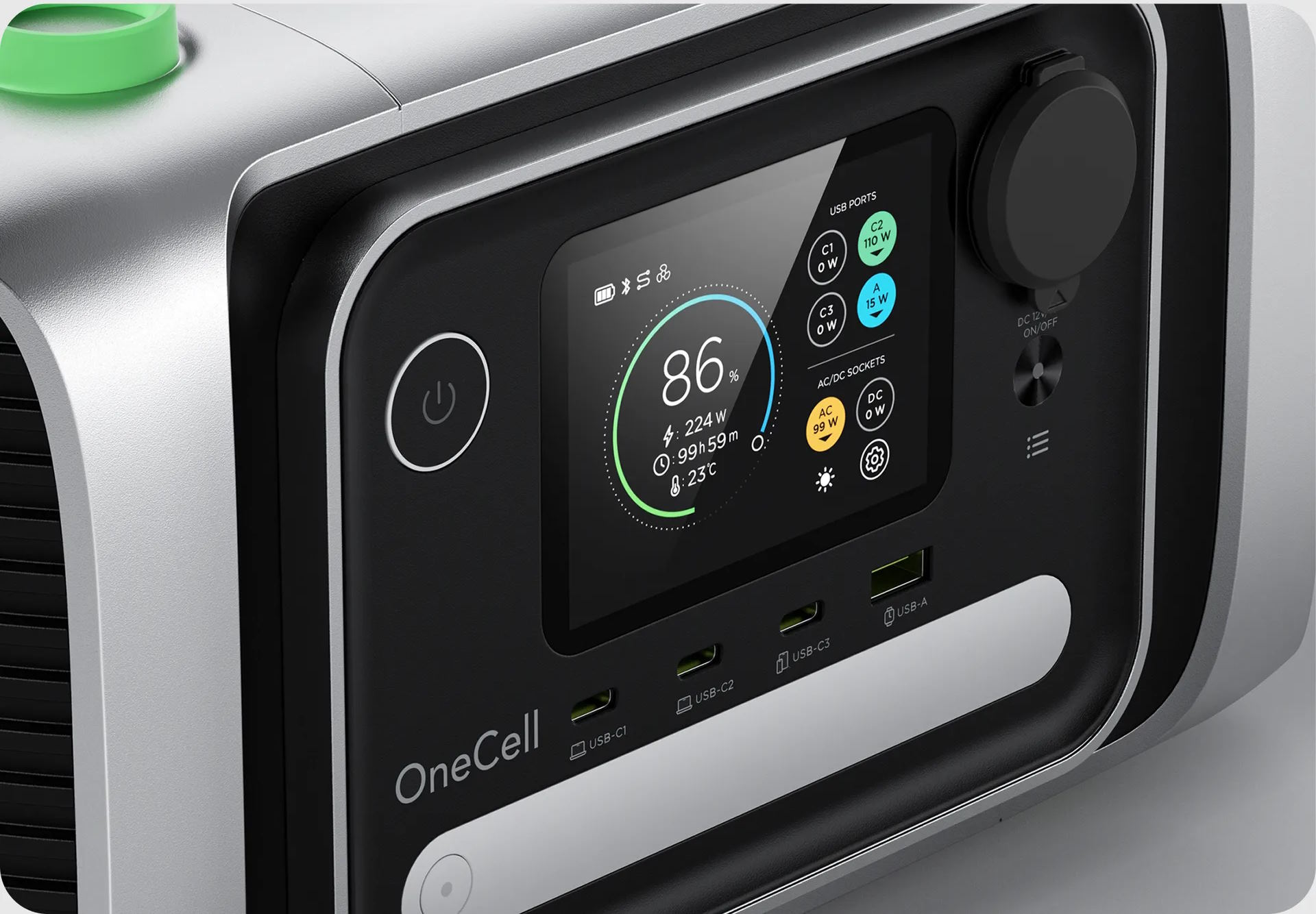 La potencia máxima de salida a través de la toma de CA se especifica en hasta 300 vatios, que pueden aumentar hasta 1.200 vatios cuando se combinan cuatro unidades. Por lo tanto, los dispositivos muy hambrientos de energía no pueden funcionar con una sola estación de alimentación. En cualquier caso, se pueden suministrar hasta 240 vatios a través de USB Tipo-C y USB PD 3.2, lo que debería ser suficientemente alto para muchos portátiles normales que admiten la carga a través de USB-C. También hay puertos USB Tipo-A con una salida máxima de 12 vatios.