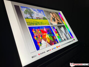 El fabricante anuncia un brillo de 400 nits y un ratio de contraste de 1200:1, y el panel AU Optronics de la unidad de pruebas es ligeramente mejor según nuestras mediciones (X-Rite i1 Pro 2 & CalMAN). Lenovo también utiliza el mismo panel para su propioThinkBook 16p. No detectamos parpadeo PWM y los tiempos de respuesta tampoco son llamativos. Se puede notar algo de clouding en la esquina superior derecha sobre fondo negro con el brillo máximo, pero apenas se nota durante las tareas diarias.