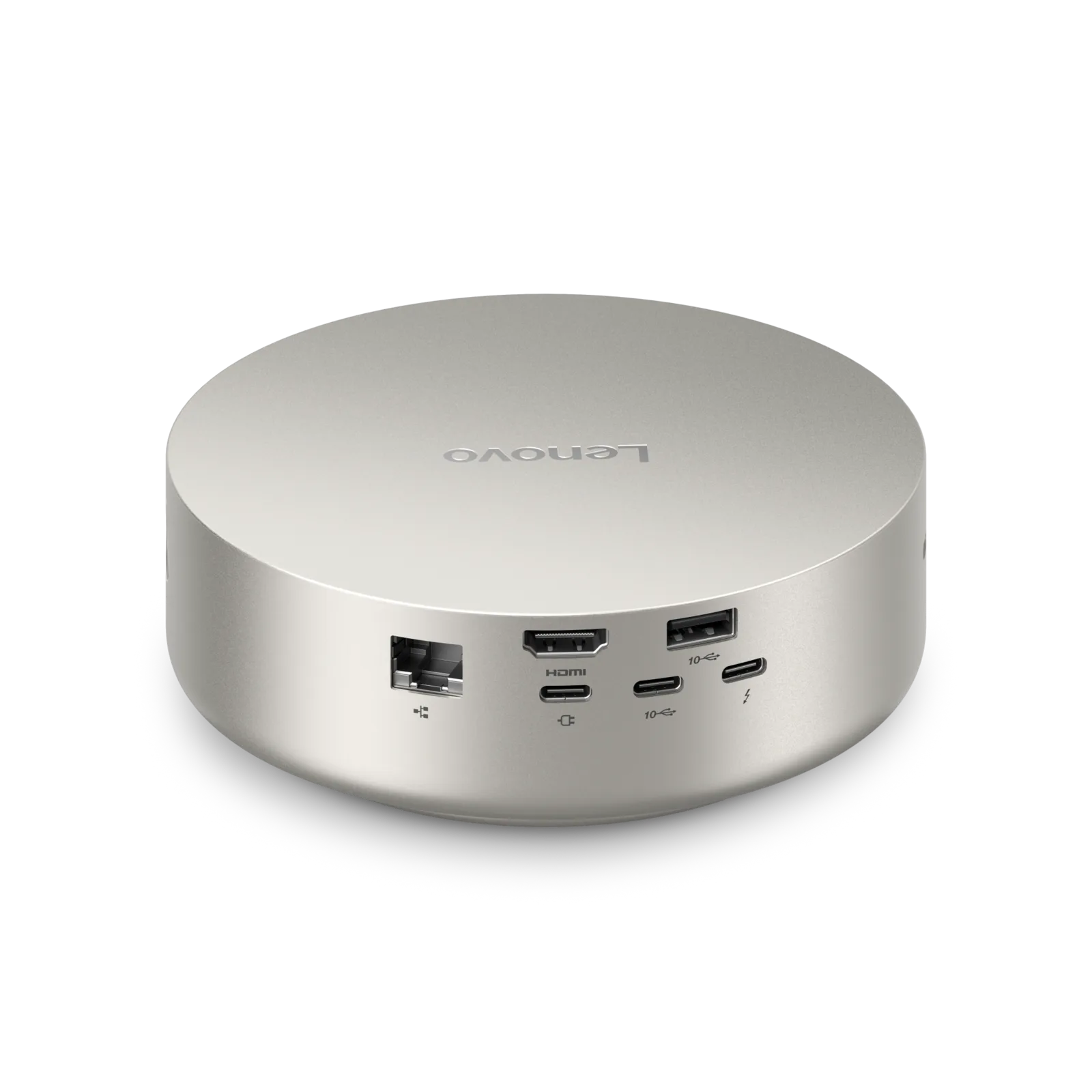 En cuanto a la conectividad, el mini PC viene con dos puertos Thunderbolt 4, dos puertos USB-C 3.2 Gen 2 de función completa, USB-A, HDMI 2.1 TMDS y un puerto Ethernet 2.5G. Lenovo afirma que el sistema puede soportar hasta cuatro pantallas externas de alta resolución simultáneamente.