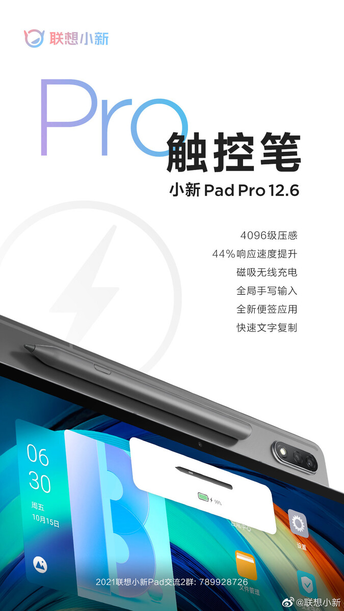 El lápiz en cuestión tiene 4.096 niveles de sensibilidad a la presión, viene con un aumento del 44% en la velocidad de respuesta en comparación con su predecesor y sujeta magnéticamente en la parte trasera del Pad Pro 12.6 para poder cargarlo. El director de marketing de consumo de Lenovo China, Song Yuezhu, también habría publicado en una instantánea de un ensayo de presentación en el que podrían revelarse otras especificaciones importantes del dispositivo