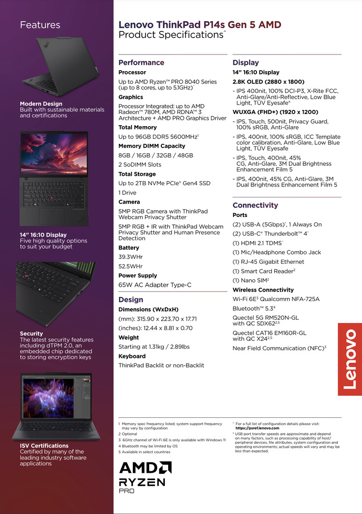 En un comunicado de prensa, Lenovo explica que el ThinkPad P14s Gen 5 viene con el Ryzen 7 Pro 8840HSuna APU octa-core que también contiene un procesador Radeon 780M iGPU. Cabría esperar que Lenovo distinguiera el ThinkPad P14s Gen 5 y el ThinkPad P14s i Gen 5 únicamente por sus arquitecturas de procesador. Sin embargo, la empresa ha realizado algunos cambios más que benefician al ThinkPad P14s Gen 5 en algunas áreas y no en otras.