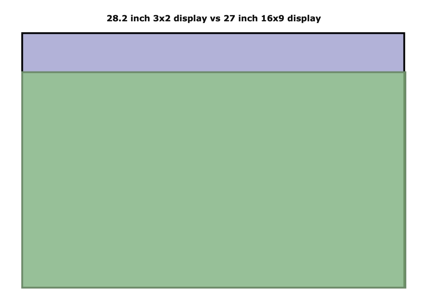 La relación de aspecto única permite una gran cantidad de espacio vertical, lo que permite a los usuarios navegar a través de hojas de cálculo y documentos rápidamente. Como se aprecia en la imagen superior, una pantalla 3:2 de 28,2 pulgadas es esencialmente una pantalla 16:9 alargada de 27 pulgadas.