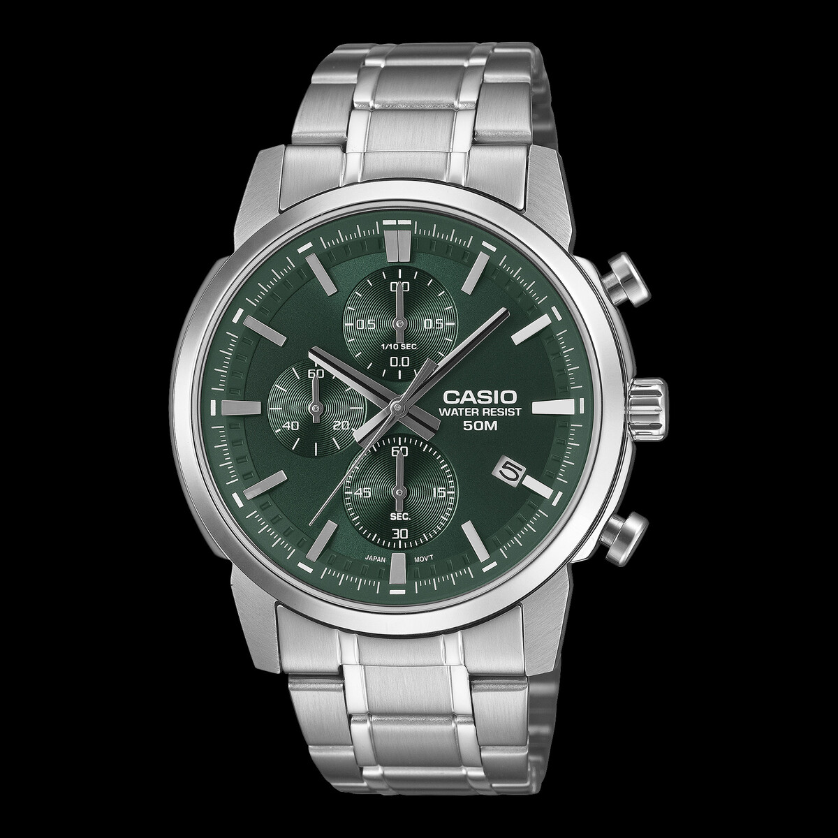 Casio amplía su línea de cronógrafos económicos este mes de octubre con nuevas variantes de color en la serie MTP-E510D, con opciones en verde, azul y marrón. Los nuevos lanzamientos parecen apostar por un precio asequible, unas especificaciones sin complicaciones y una construcción metálica que se sitúa a caballo entre el clásico Casio Standard y el aspecto del más caro Edifice más cara. No parecen relojes estándar de esfera pequeña, típicos de la serie MTP.
