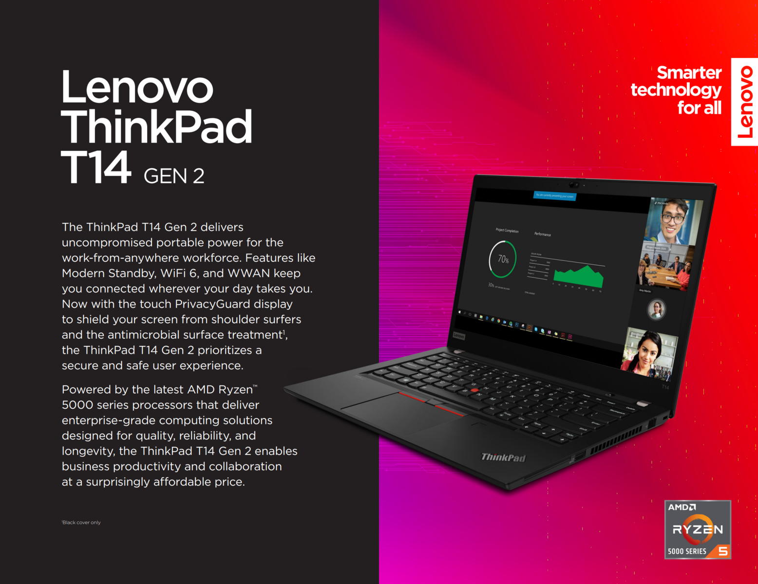 El ThinkPad T14 Gen 2 y el ThinkPad T15 Gen 2 estarán disponibles en marzo de 2021, y la versión AMD del T14 Gen 2 saldrá a la venta en mayo. Con un precio base de 1.159 dólares, es más barato que el T14 Gen 2 Intel (1.379 dólares) y el T15 Gen 2 (1.499 dólares)