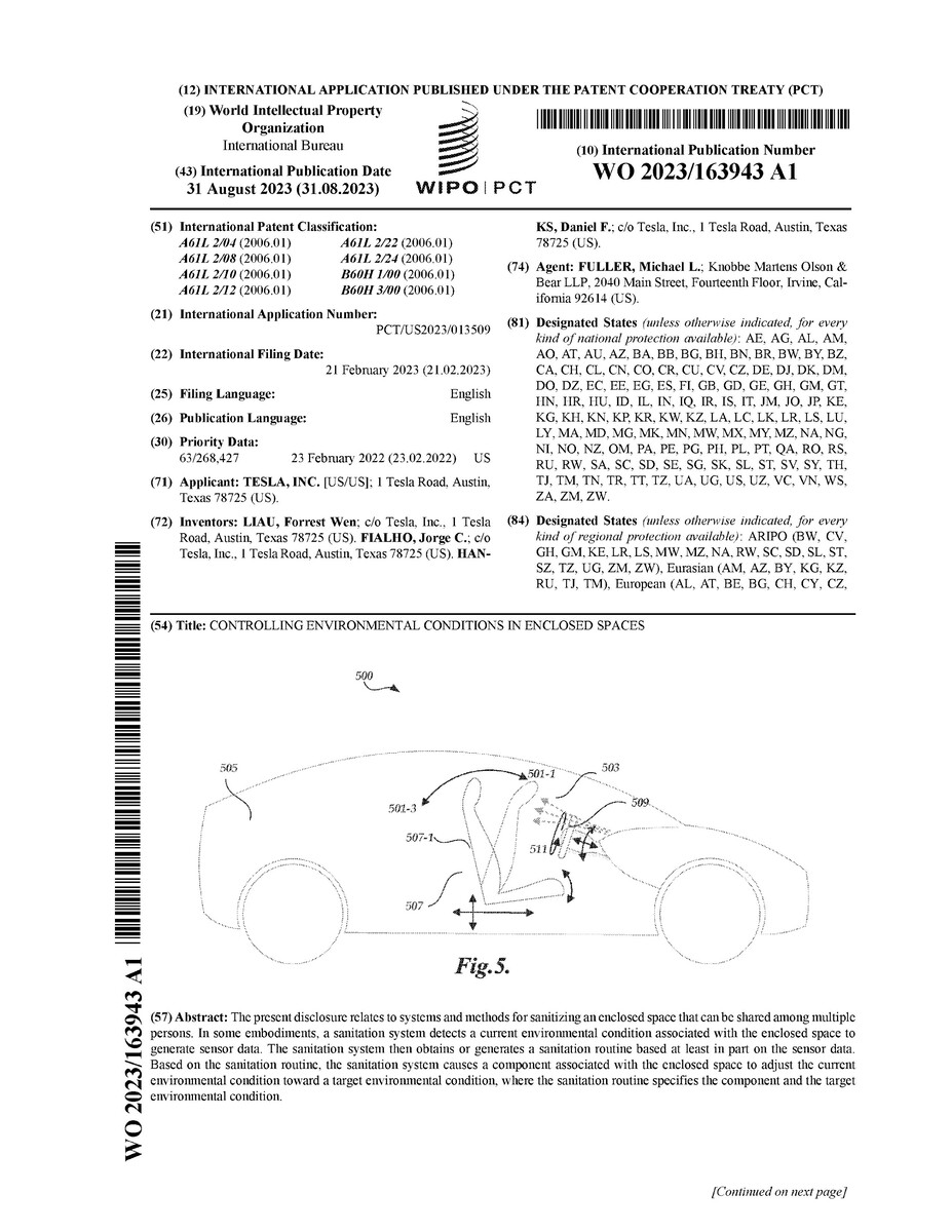 Lo hizo patentando, al parecer, un sistema de autolimpieza del interior del vehículo que utiliza múltiples enfoques -desde el vapor hasta la luz ultravioleta- para limpiar y desinfectar los coches sin conductor: