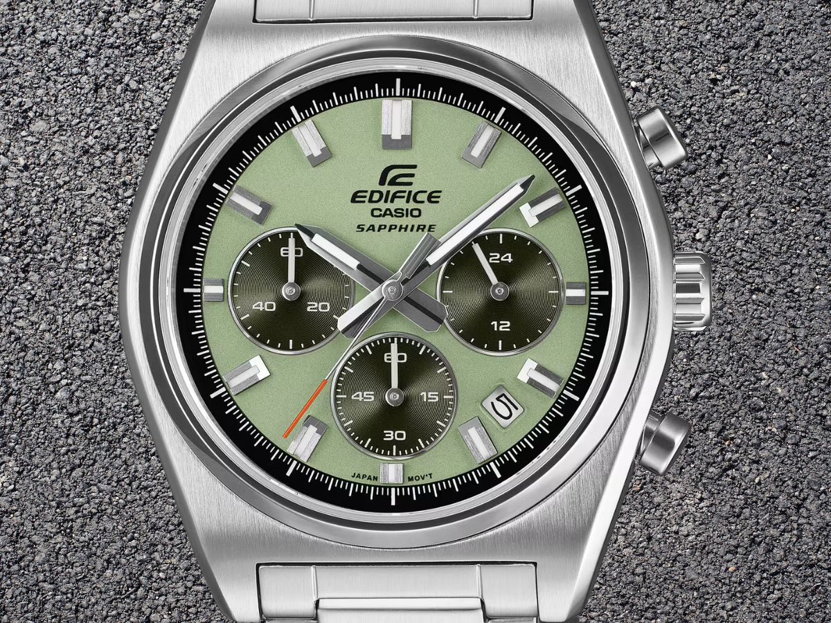 El Edifice EFB-730 de Casio cuenta con tres agujas analógicas, de las que se dice que mantienen una precisión de 20 segundos al mes. Dispone de un indicador de fecha básico y tres subesferas, una de las cuales muestra la hora en formato de 24 horas. Las otras dos esferas más pequeñas están vinculadas al cronómetro de 1 segundo, mostrando los segundos y minutos transcurridos. Estos relojes son resistentes al agua hasta 100 m y deberían funcionar durante unos tres años con una pila SR920SW.