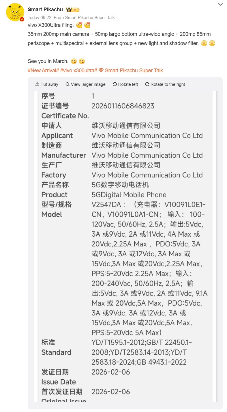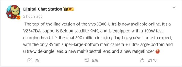 Vivo X300 Ultra: Más especificaciones en línea