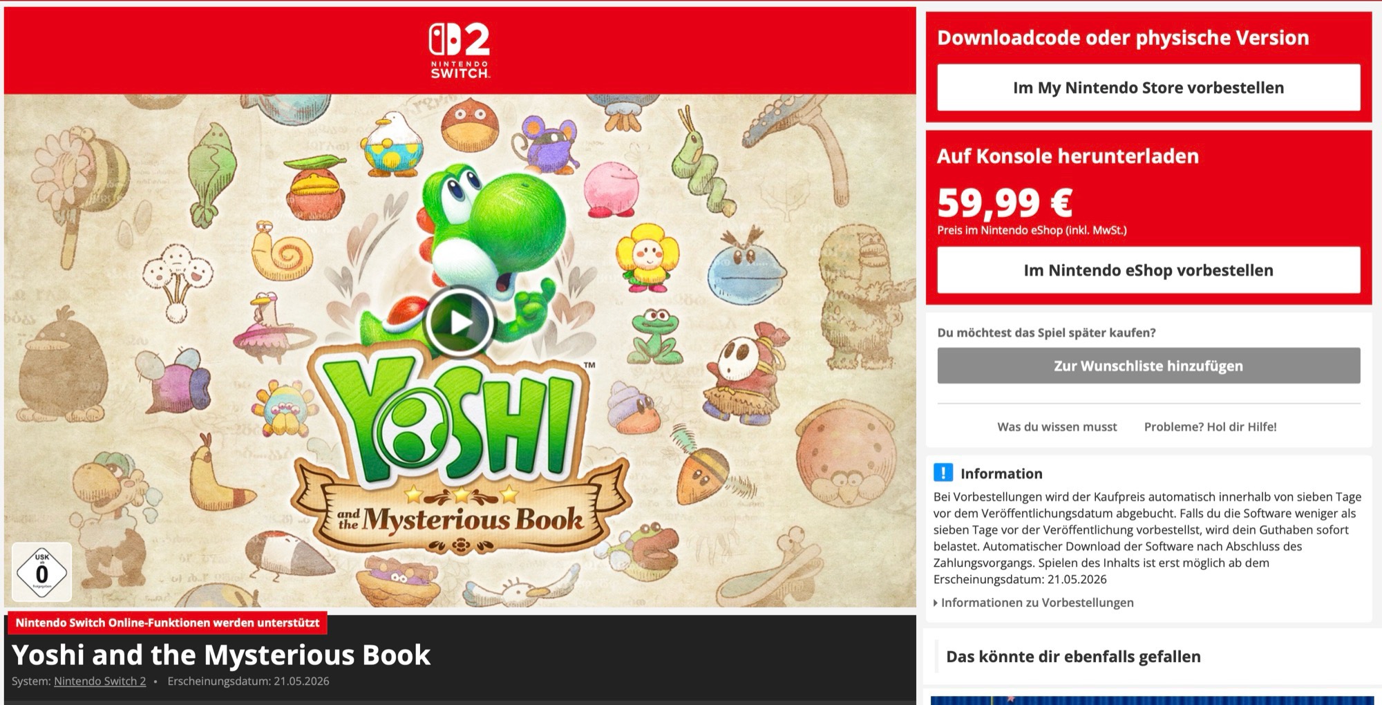 Yoshi y el libro misterioso es el primer título que utilizará este nuevo modelo de precios. El juego saldrá a la venta en mayo y ya puede reservarse en la eShop de Nintendo https://www.nintendo.com/de-de/Spiele/Nintendo-Switch-2-Spiele/Yoshi-and-the-Mysterious-Book-2915259.html por 59,99 dólares. El PVP de la versión minorista es de 69,99 $. Nintendo hace hincapié en que los juegos ofrecen el mismo contenido y la misma experiencia de juego, independientemente de si se compran digitalmente o en cartucho. Este cambio pretende reflejar los "diferentes costes de producción y distribución", lo que tiene todo el sentido, ya que los módulos de juego no sólo requieren costosos chips de memoria, sino que también hay que tener en cuenta un margen para los minoristas
