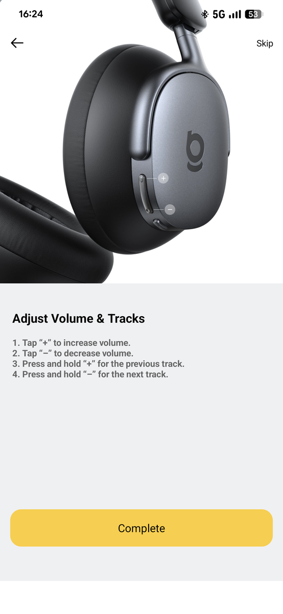En el auricular izquierdo están el botón de encendido y el interruptor de modo ANC (ANC activado/desactivado/transparencia). A la derecha están el control de volumen (también para saltar de pista) y el botón de reproducción/pausa. Todos los botones son fáciles de alcanzar y proporcionan una respuesta táctil clara, con una indicación de voz que confirma las acciones.