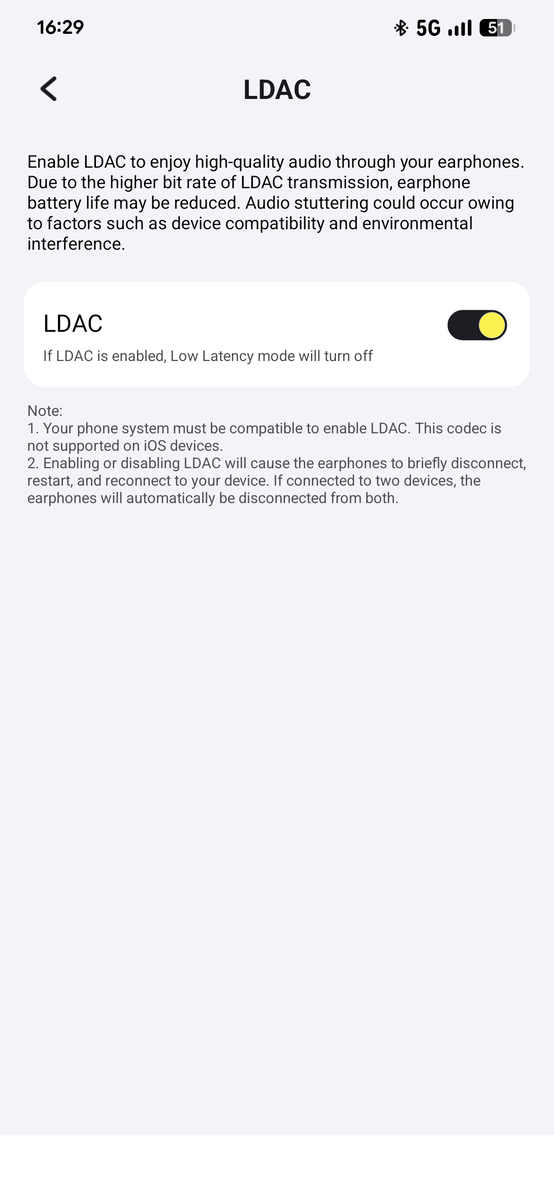 La XH1 ya es compatible con Bluetooth 6.1, que promete una latencia significativamente menor que las versiones anteriores. También hay un "Modo de baja latencia" en la aplicación complementaria para jugar o ver películas. Además, la conectividad multipunto permite el emparejamiento con hasta dos dispositivos a la vez.