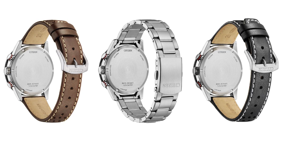 Estos relojes CA471 Eco-Drive están equipados con un calibre B620-00M. Tiene una reserva de marcha de 270 días y puede cargarse con cualquier fuente de luz. Este cronógrafo analógico cuenta con herramientas como un cronómetro, una indicación básica de la fecha, un indicador de batería y un reloj de 24 horas. Se dice que sus tres agujas tienen una precisión de 15 segundos al mes. Además, Citizen comercializa estos relojes como resistentes al agua hasta 10 bar.