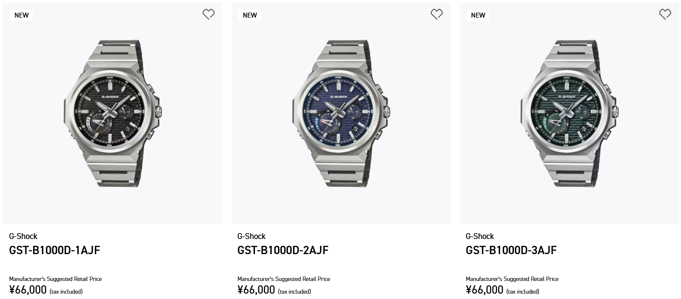 Casio ha listado oficialmente su nueva serie G-Steel GST-B1000 en el sitio web japonés, confirmando lo que filtraciones anteriores y listados de minoristas han sugerido durante meses. Este listado verifica el calendario de lanzamiento, los detalles del modelo y los precios de las tres variantes principales: GST-B1000D-1AJF (esfera negra), GST-B1000D-2AJF (esfera azul), y GST-B1000D-3AJF (esfera verde).