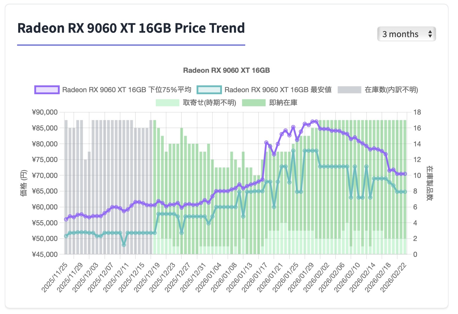 Las subidas de precios en el hardware para juegos debidas a las limitaciones de la oferta y a una demanda constante no son nada fuera de lo común, pero parece que en Japón ha ocurrido todo lo contrario. Como señala en GAZ:log, tras la escasez de tarjetas GeForce a finales de 2025, los precios de las tarjetas Radeon 9060 y 9070 se dispararon, alcanzando subidas de hasta el 45% en enero de 2026 en comparación con los precios de diciembre de 2025 de la GPU de juego insignia Radeon 9070 XT.