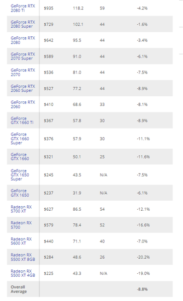 El análisis de Tom's Hardware sobre los precios de las GPU en las dos primeras semanas de marzo de 2022 ha revelado https://www.tomshardware.com/news/gpu-prices-mid-march-down-nine-percent que los precios en eBay de las GPU de Nvidia y GPU de AMD están cayendo en picado. Según el sitio, los listados de eBay muestran una reducción del 25% en los precios medios de las GPU desde diciembre de 2021. Sin embargo, incluso con las caídas de precios actuales, los precios de las GPU siguen siendo inflados, llegando a estar un 68% por encima del MSRP para Nvidia y un 45% para AMD.