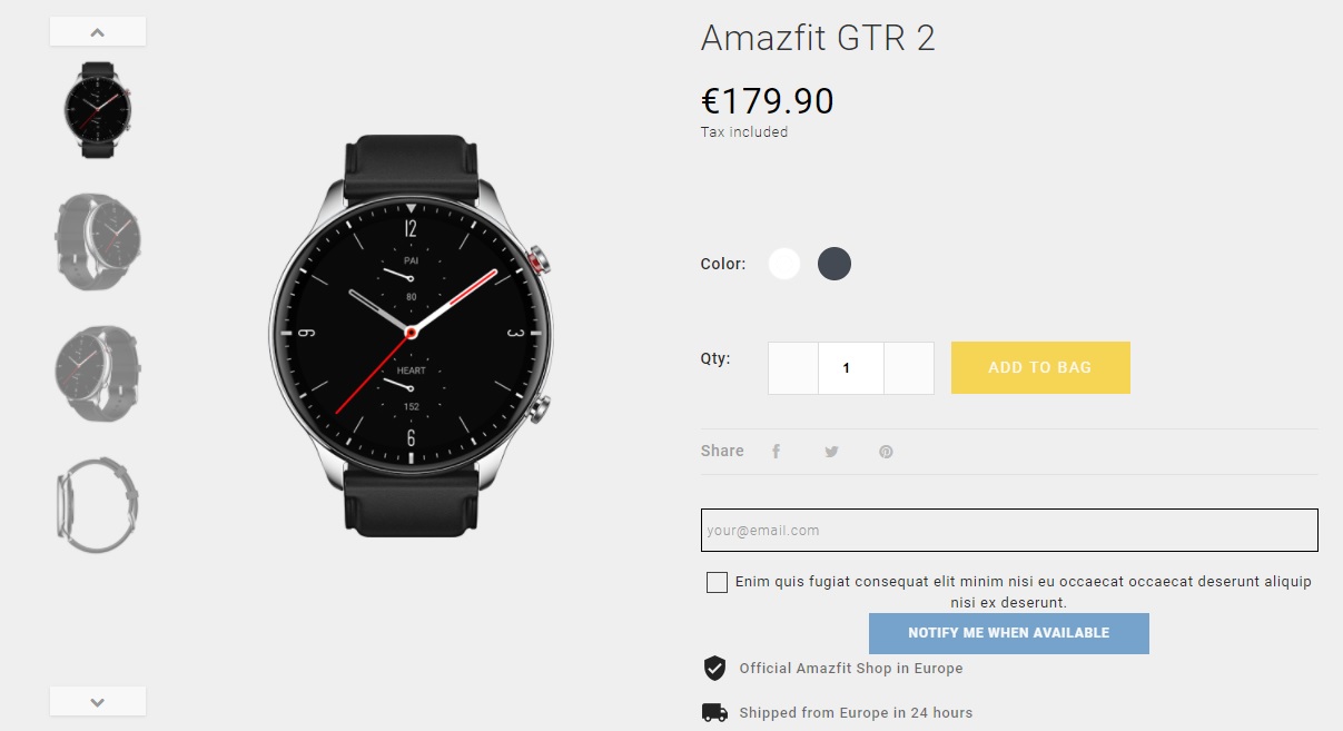 Amazfit.shop(1/2, en italiano/inglés) via XiaomiToday (en italiano)