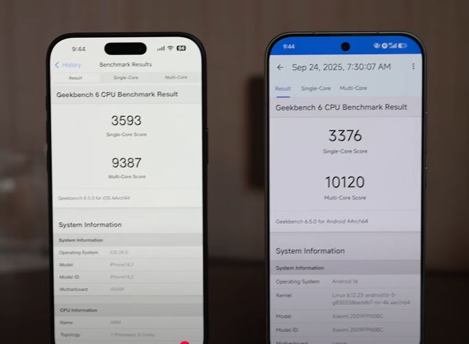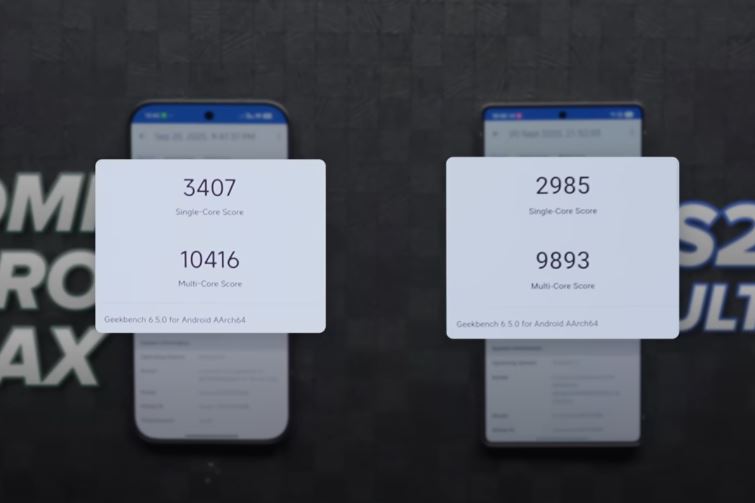 Geekbench cuenta una historia similar. Mientras que en los listados previos al lanzamiento de la serie 17 de Xiaomi los dispositivos cruzaron las marcas de 3.700 y 11.000 en las pruebas mononúcleo y multinúcleo, los resultados prácticos cuentan una historia diferente. La unidad de Ben's Gadget Reviews obtiene 3.376 y 10.120 en comparación, la de Sahil Karoul logra 3.328 y 10.210, y la de Mrwhosetheboss llega a 3.407 y 10.416. Esas cifras son sólidas pero no significativamente mejores que las de un dispositivo como el Oppo Find X8 Ultraque obtuvo 3.145 y 9.722 en nuestras pruebas. Por otro lado, son mucho peores que los del Snapdragon 8 Elite Gen 5 Dispositivo QRD (3.832 y 12.459).