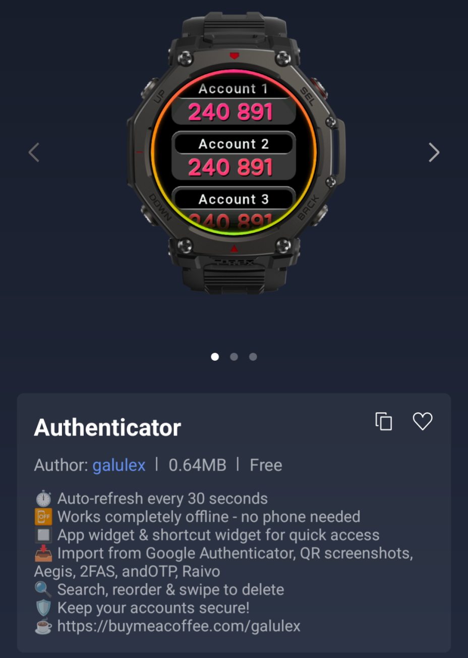 Zepp Health también señala que se ha renovado la aplicación Authenticator Mini. Este software puede utilizarse para generar códigos de autenticación de servicios como Google Authenticator, 2FAS y Aegis. Los códigos se actualizan cada 30 segundos y la miniapp puede funcionar sin conexión.