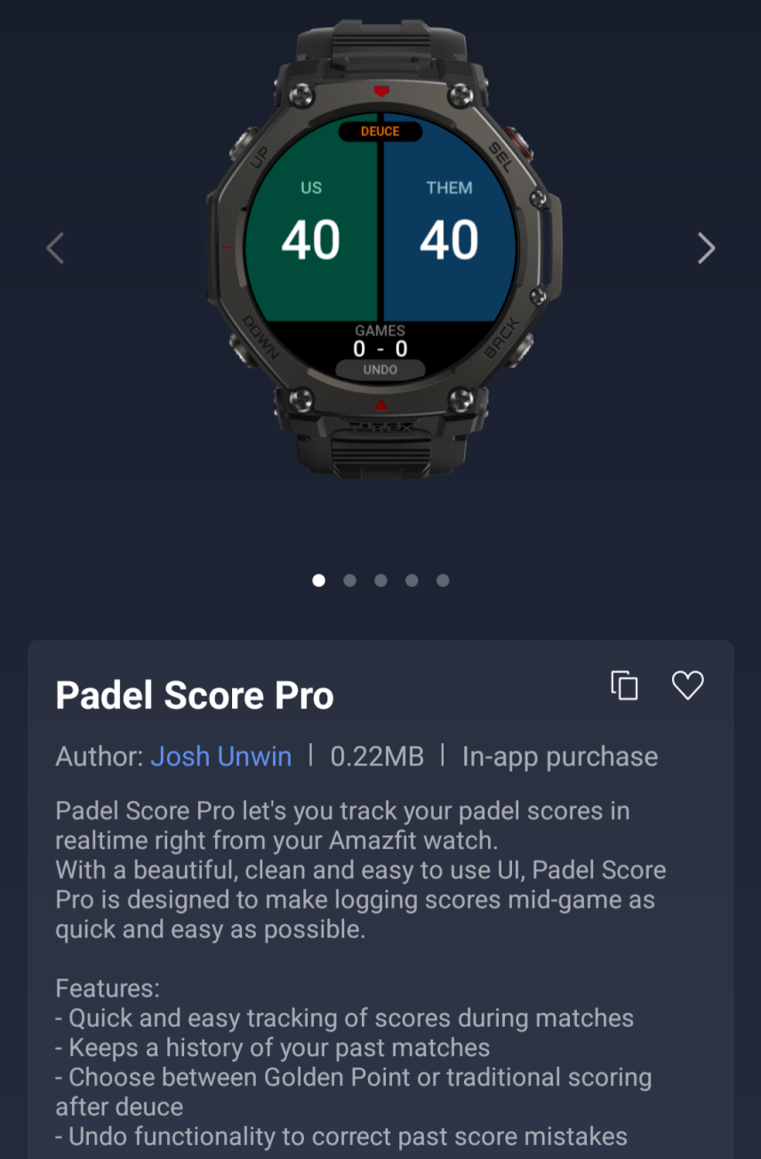 Según un reciente post de Discord de Zepp Healthya está disponible una nueva aplicación WristSnap Mini a través de la Zepp App Store. Se puede utilizar para facilitar la toma de fotos en su smartphone conectado. Hay una nueva Mini App Barómetro, que permite a los usuarios comprobar la presión atmosférica en tiempo real, así como ver los datos registrados recogidos en la última semana. La última nueva miniapp es Padel Score Pro; como su nombre indica, está diseñada para permitirle hacer un seguimiento de sus puntuaciones de pádel en su smartwatch Amazfit. Cabe destacar que esta última app ofrece compras in-app.