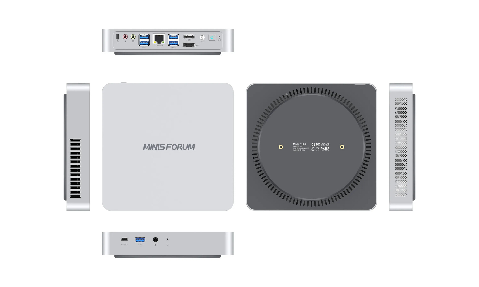 Por cierto, MINISFORUM sólo ha diseñado el Elitemini TH60 en color plata, por lo que se parece mucho al Mac mini. Mejor aún, el Elitemini TH60 es igual de alto que el Mac mini, aunque también es ligeramente más estrecho y menos profundo. Además, el Elitemini TH60 admite hasta 64 GB de memoria RAM DDR4 en dos ranuras SODIMM, aunque sólo se entrega con 16 GB. Asimismo, mientras que el Elitemini TH60 tiene 512 GB de almacenamiento, el MINISFORUM incluye dos ranuras M.2 2280 PCIe 4.0 y una conexión M.2 2230 para un módulo Bluetooth/Wi-Fi. Al mini PC tampoco le faltan puertos y cuenta con las siguientes E/S