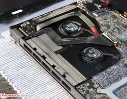 Térmicamente, el Z16 tiene una posición pasable. En modo equilibrado, los ventiladores permanecen en su mayoría apagados en reposo, pero ocasionalmente se encienden bajo rendimiento. El calor residual es apropiado para el rendimiento y se nota principalmente en la zona trasera del portátil. Bajo carga, los tres ventiladores producen una buena cantidad de ruido, pero al menos es constante, nunca agitado.