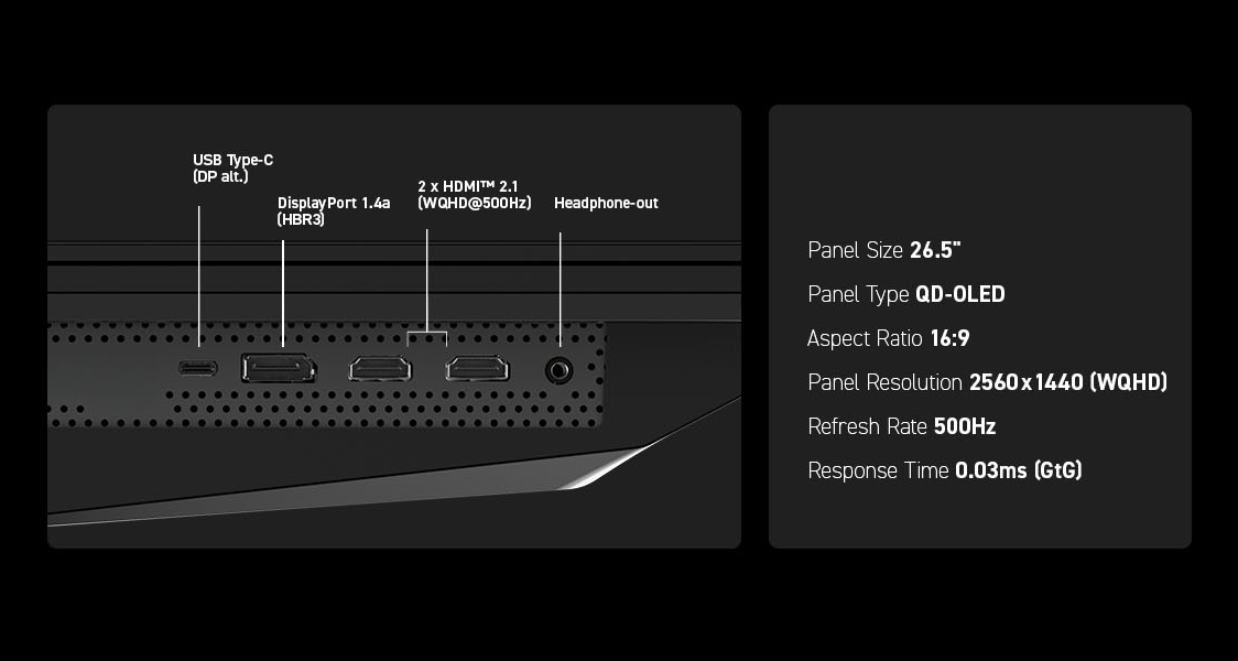 Además, el MAG 272QP X50 cuenta con un puerto USB Tipo-C con capacidad para 15 W y carece de los puertos USB Tipo-A o USB Tipo-B que se encuentran en el MPG 271QR QD-OLED X50. Otras diferencias incluyen la tecnología OLED Care 2.0 en lugar de OLED Care 3.0 y la ausencia de AI Care Sensor para mitigar el quemado de OLED. No obstante, el MAG 272QP X50 sigue ofreciendo tiempos de respuesta GtG de 0,03 ms con la ayuda de la tecnología de frecuencia de refresco dinámica AMD FreeSync Premium Pro.