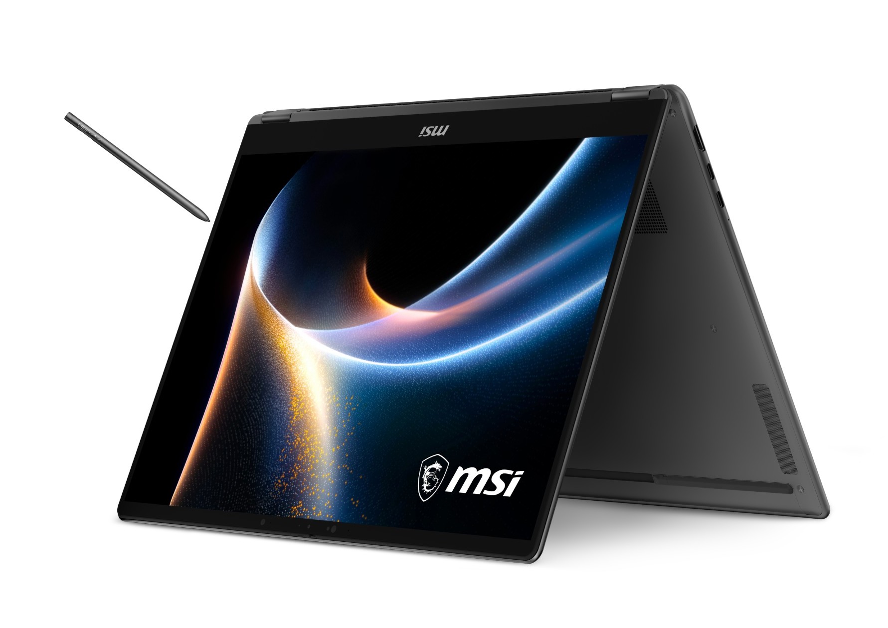 Tanto la Prestige 16 AI+ como la Prestige 16 Flip AI+ vienen equipadas con una pantalla OLED de 16 pulgadas 16:10 2.8K que soporta VRR de 48-120 Hz, cubre el 100% de DCI-P3 y tiene certificación VESA DisplayHDR True Black 600. Al ser un convertible, el Prestige 16 Flip AI+ luce una pantalla táctil con protección Corning Gorilla Glass y es compatible con el nuevo MSI Nano Pen que encaja perfectamente en la ranura del portátil. El Nano Pen viene incluso con la función Press-to-talk para conversar sin problemas con Microsoft Copilot.