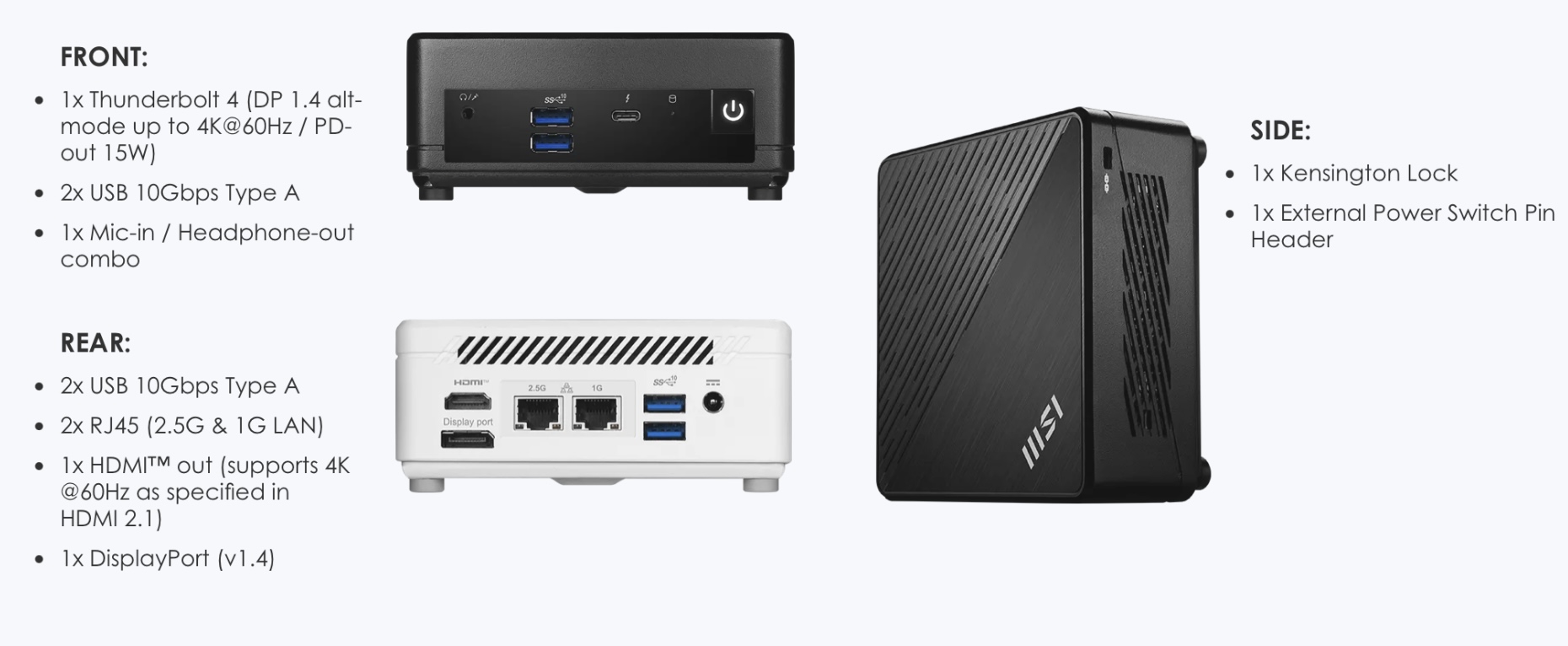 - HDMI 2.1, DisplayPort 1.4