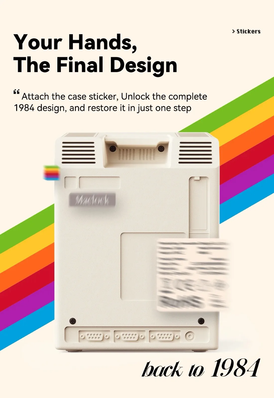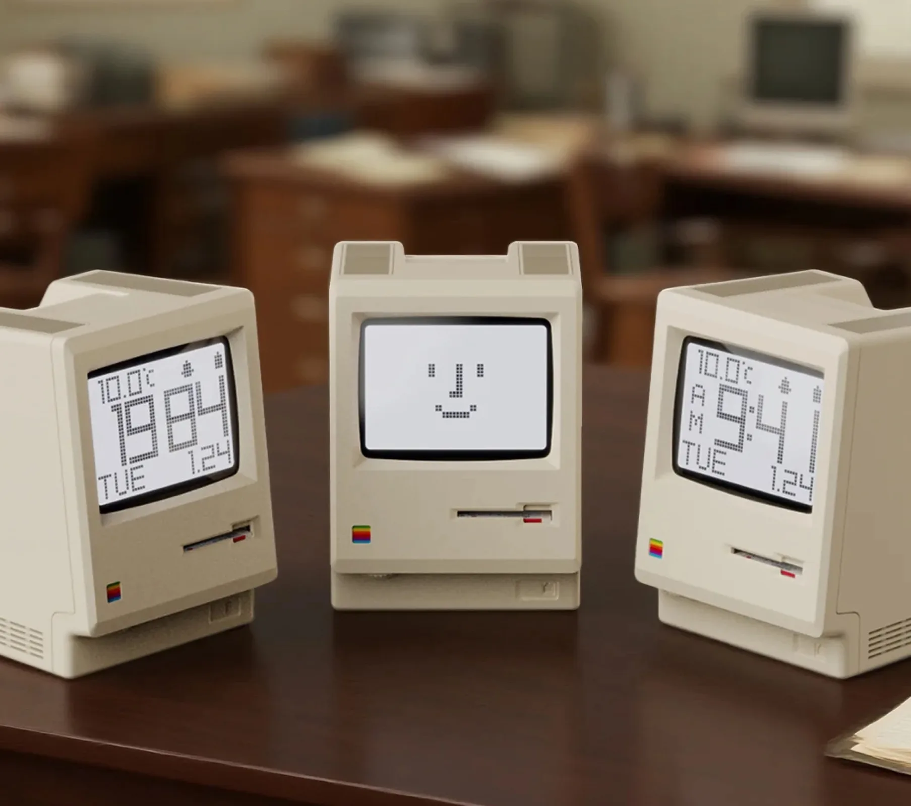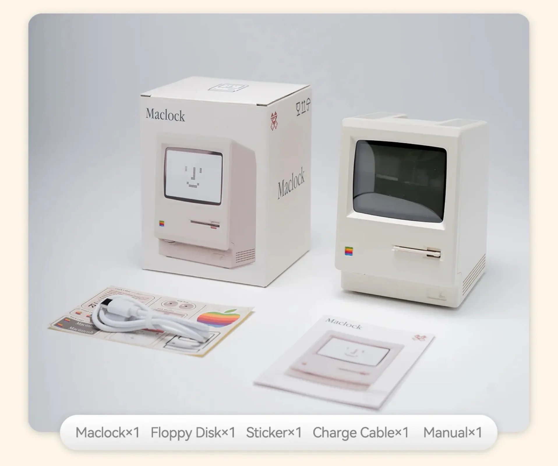 La pantalla muestra la hora y la fecha por defecto, pero Maclock también puede utilizarse como despertador. La caja del reloj digital mide 8 x 9,1 x 11,2 centímetros. Las pegatinas de la parte posterior de la caja deben ser colocadas por el comprador. El Kokogol Maclock sólo se fabrica en cantidades limitadas; una vez agotado, dejará de estar disponible.