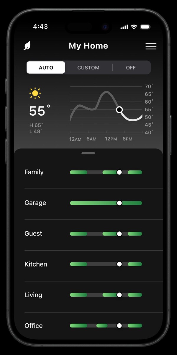 Rendimiento impulsado por la IA: Una aplicación complementaria utiliza la IA para optimizar el ahorro de energía, los beneficios para la salud y la seguridad mediante el análisis de factores como la luz solar, el clima y las preferencias del usuario.