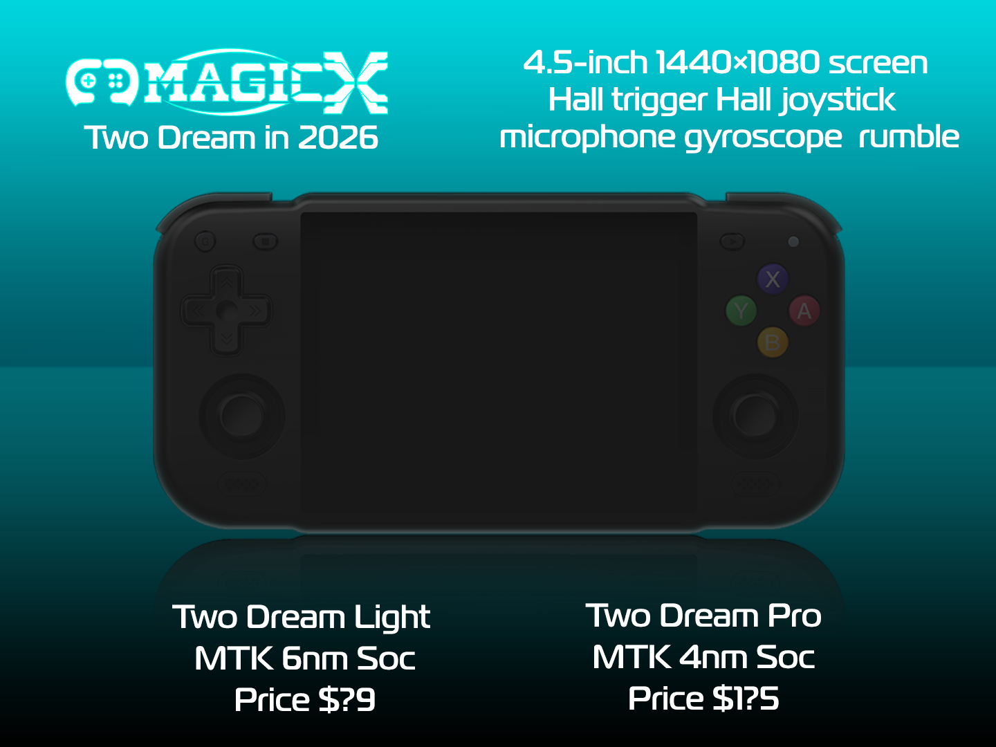 Ahora, MagicX ha confirmado la llegada inminente de dos nuevos dispositivos portátiles. Por el momento, no está claro si la empresa tiene previsto lanzar el One Retro 45, One Flip 50 y Dos DS 46 primero. Mientras esperamos más detalles sobre esos tres dispositivos portátiles, MagicX ha esbozado la información inicial sobre el Two Dream Light y el Two Dream Pro.