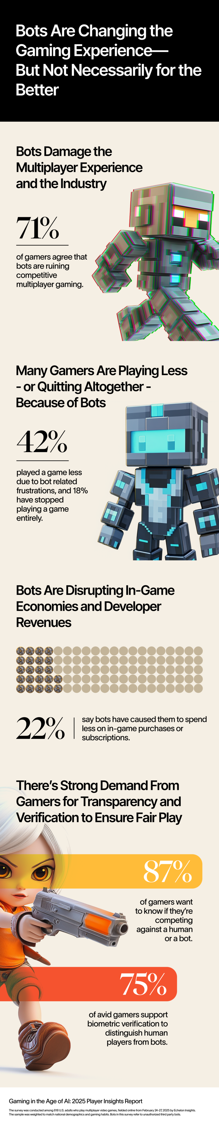 - el 74% de los jugadores afirma que los bots están haciendo que sea menos divertido jugar a determinados juegos