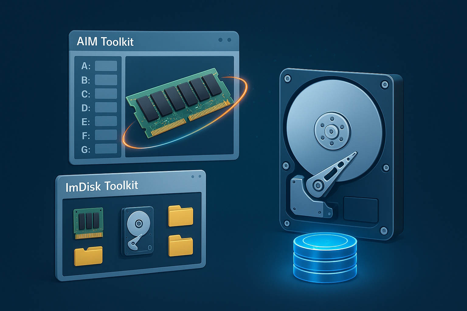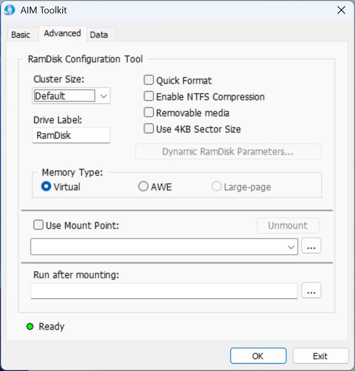 Para una prueba como esa, necesita una unidad que sea consistentemente más rápida que cualquier SSD que esté evaluando. Eso elimina cualquier cuello de botella en el lado de origen o de destino. Y ahí es donde entra en juego la herramienta de código abierto AIM Toolkit. Una alternativa popular es ImDisk. Ambas herramientas ofrecen las mismas dos características principales: pueden crear unidades virtuales en RAM y pueden montar archivos de imagen como unidades virtuales.